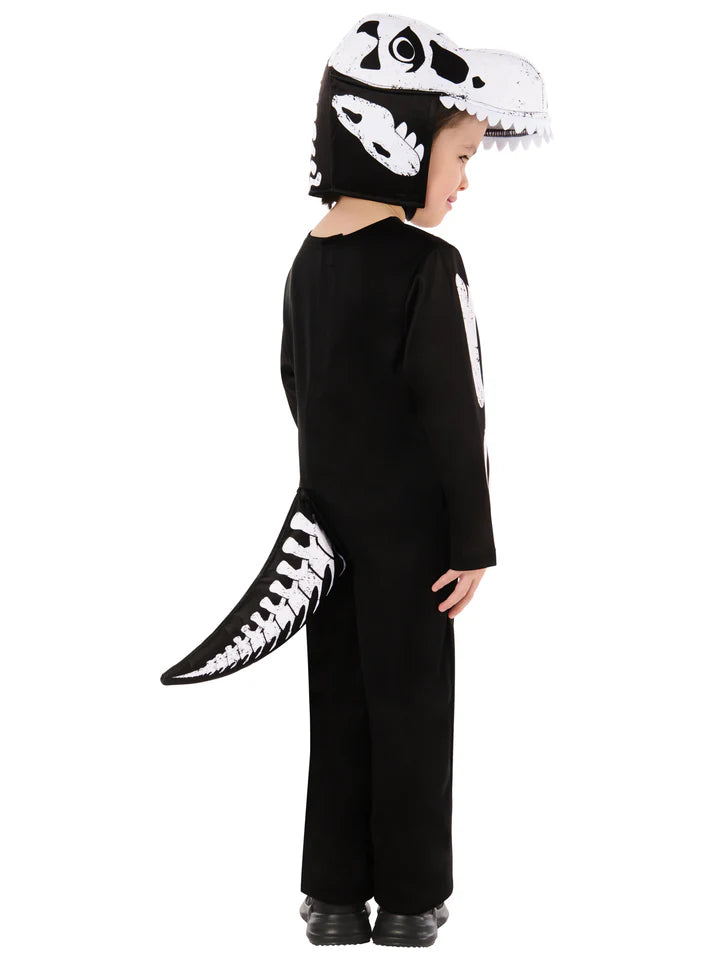 Black jumpsuit with skeleton print with dinosaur tail and headpiece - fits age 5 to 6 years
